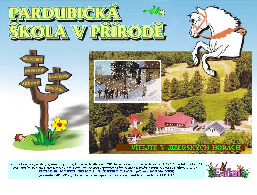 Rozcestník a letícího ptáka jsem vypreparoval z původní stránky. Texty rozcestníku jsem sladil s texty fyzických rozcestníků, které jsem tou dobou vytvářel pro potřeby kontroly Hudební výchovy. Kdesi na webu jsem šlohl obrázek žáčka (po dvou hodinách jsem lepšího k obrázku palmy nenašel), kterému jsem musel vyretušovat znehodnocující vodoznaky. Autorovy obrázku se takto omlouvám. Jen jsem žáčkovi dokreslil do aktovky pravítko, bez kterého není školní brašna brašnou. Na zvadlo poskládal texty, graficky je upravil a snad hotovo. Na hodinách právě odbyla páteční třetí hodina ranní. Dva večery práce se vším tím hledáním, zkoušením jak co bude vypadat, retušováním a předěláváním.