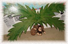 Horší bylo sehnat opičku, která určitě k palmě s kokosy nerozlučně patří. Sehnat opelichanou opičku, opicu na poslední štaci, ale byla zoufalost. Představoval jsem si opičku s takovejma dlouhejma nohama a rukama, ale nakonec jsme se museli obětovat malou zachovalou Matesovou opičkou, která podle fotek jako by na palmě byla od malička. Ale mnozí mohli opičku již vidět na Zlaté horečce, kde posloužila jako image k flašinetu.