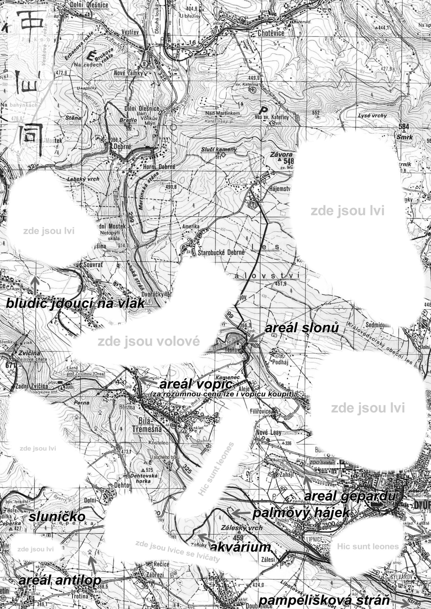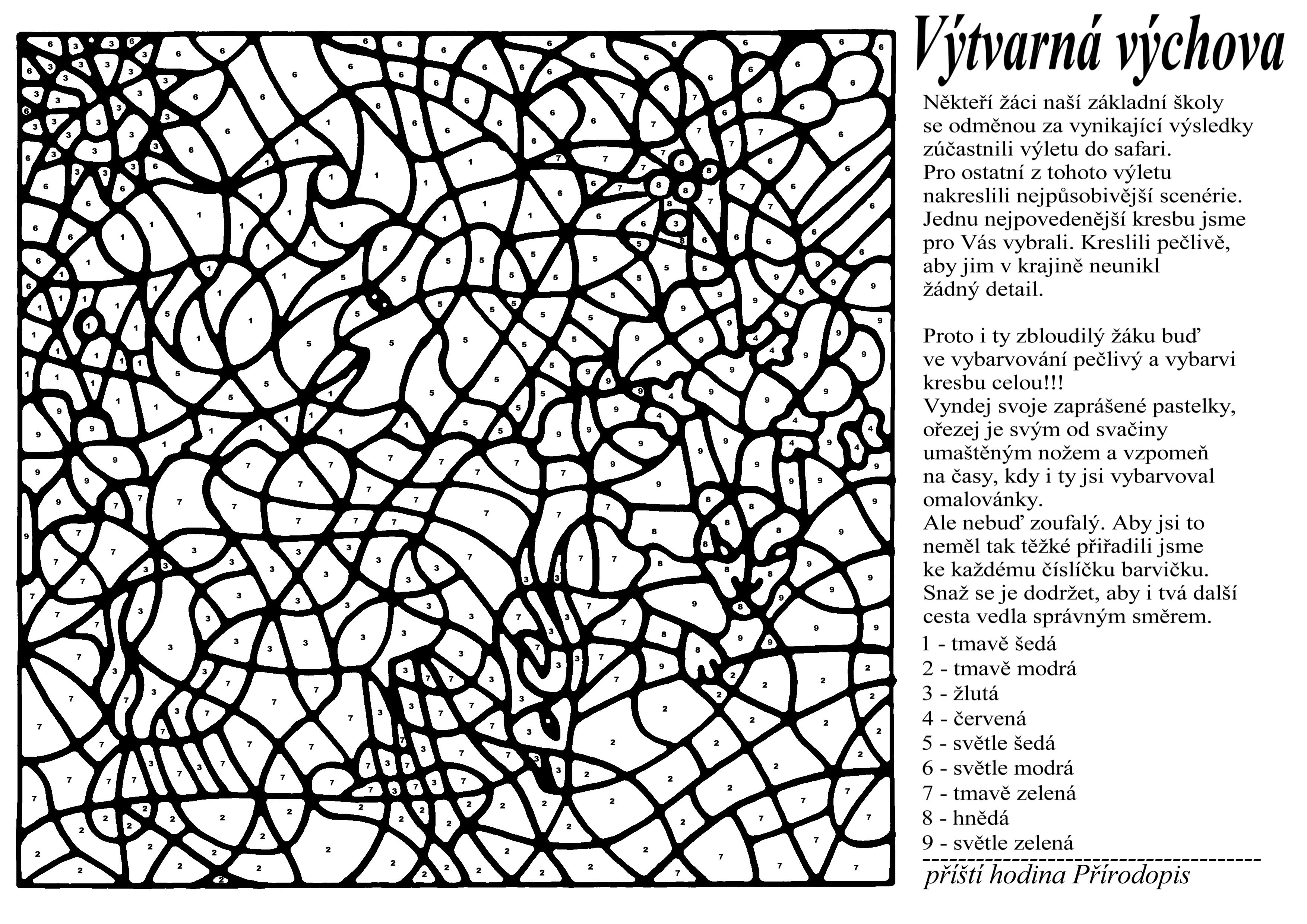 Všechny tři náměty by šli určitě použít, ale vzhledem k originálu obrázku se zoologická zahrada nejlíp hodila k dalšímu grafickému zpracování. Prostě byla jak z klasických omalovánek. Že se následně tato šifra použila v blízkosti zoologické zahrady ve Dvoře Králové je až další matoucí asociace. Prostě tento obrázek byl pro realizaci nejpříhodnější. Znamenalo to malý obrázek zvětšit aspoň na úroveň A4, vyhladit a hafokrát vytisknout, aby bylo co kazit. Pak jsem si vzal černou fixu a začal obrázek obkreslovat a rozdělovat na menší a menší části. Počmáraný obrázek jsem znovu naskenoval, vyretušoval, vyhladil, přidal číslíčka a zkontroloval na tiskárně, zda budou vůbec čitelný.
