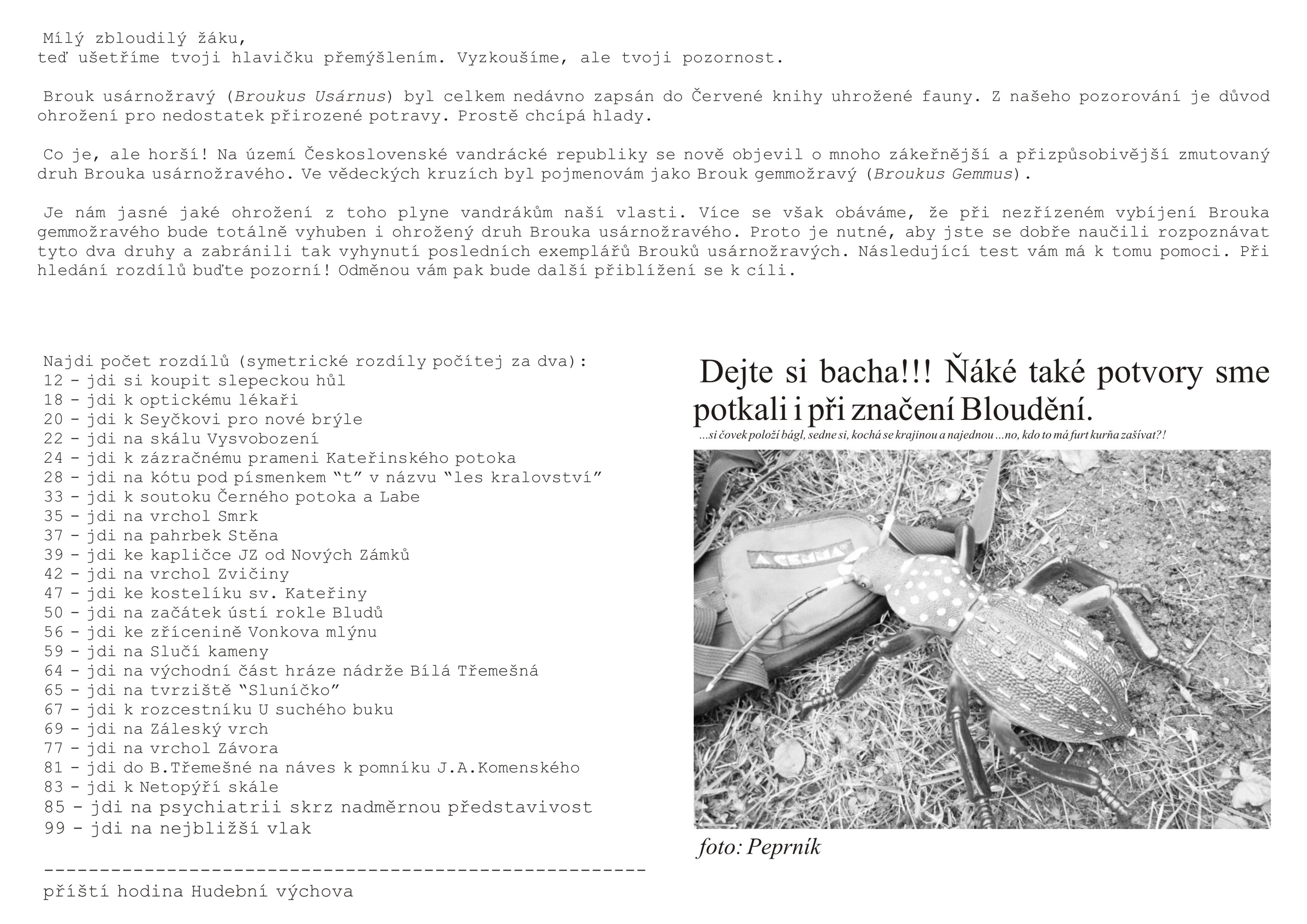 Když to má být přírodopis, tak bude vhodnější nějaký obrázek zvířete, rostliny. Špulka na webu našla spoustu obrázků - kostra ryby, žáby, žaludek krávy, ale brouk střevlík se mi i přes malou velikost obrázku zamlouval nejvíce. Tam by se dalo hledat rozdíly mezi dvěma brouky.