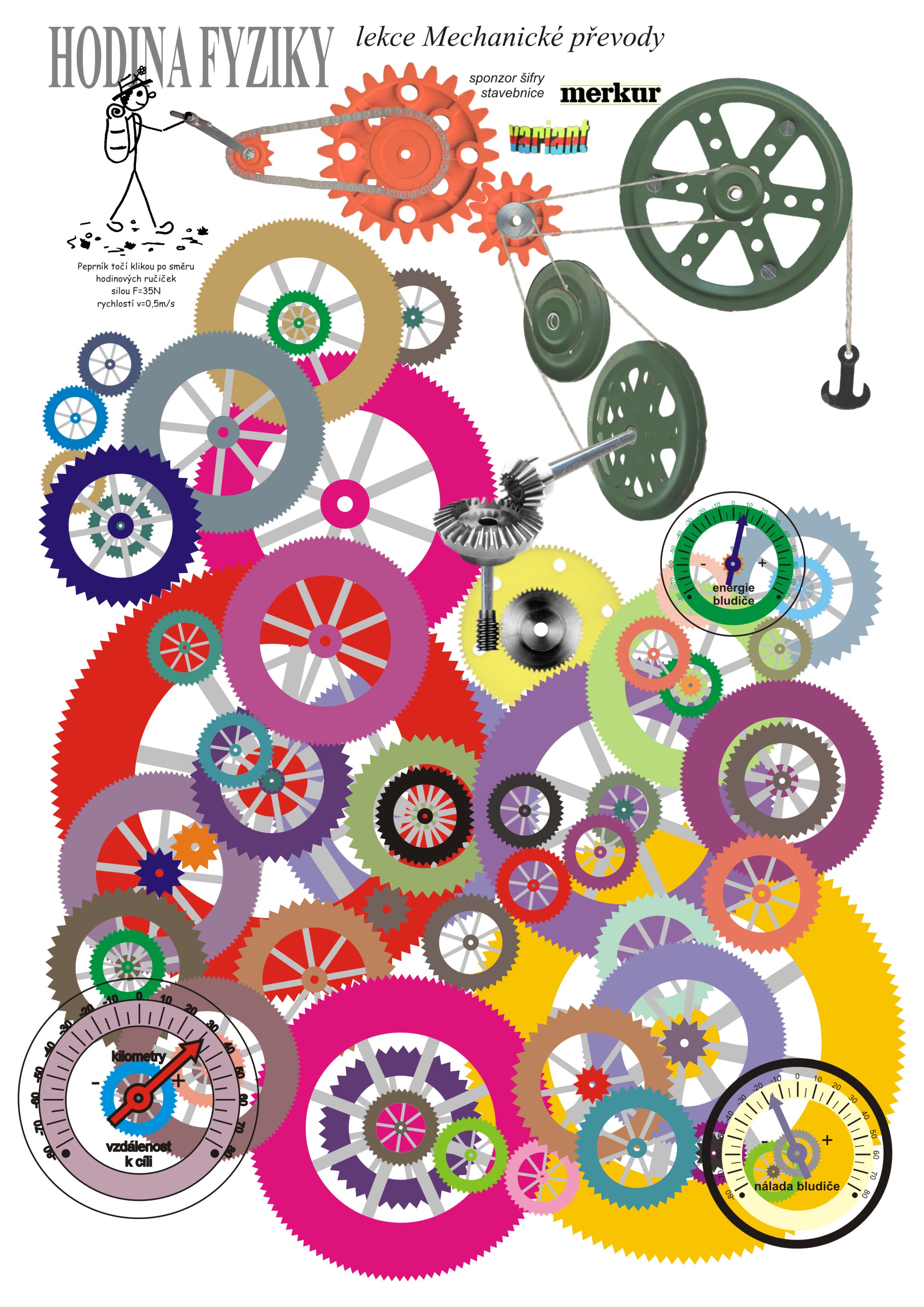 Příležitostně už v průběhu podzimu jsem naskenoval všeliká kolečka ze stavebnice Merkur, Variant a na webu dohledal všeliké obrázky soukolí, ale vzhledem k časovej tísni, kdy jsem za ostatní musel řešit jiné věci k Bloudění pořád na Fyziku nezbýval čas. Ale předmět Fyzika musí být, protože to určitě byl u většiny bludičů oblíbený předmět a Andyho poznámka (když se odkleplo, že u šifer budeme připisovat co je příště čeká za předmět), že při přečtení odkazu „příští hodina Fyzika“ se polovině bludičů při vzpomínce na tento předmět orosí čelo, se mi navýsost líbila.