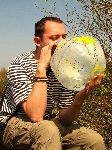 Mravenec nafukuje glóbus, který je součástí kvízu