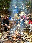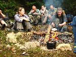 Ráno u ohně ve starém lomu na kopci Hoher Stein