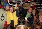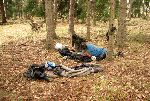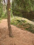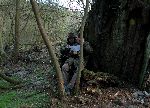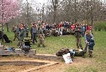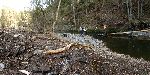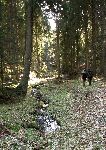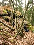 V těchto místech měla být dle mapy lávka, ale při jarním tání nejspíš vzala za své. Předchozí bludičská skupinka nám právě staví lávku. Ale i tak jsem raději přebrodil, abych nemusel zbytek bloudění sušit hadry, batoh, spacák. Jak jsme se v cíli dozvěděli jedné holčině z jinčí skupinky se přechod po kládě nevyplatil. Ale byla drobnější postavy, takže poskytnout oblečení od spolubludičů nebyl problém.