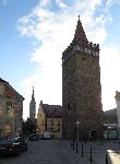 Věž městského opevnění datovaná do 14. století. V 15. století po husitských nájezdech přestavěná. V pozadí evangelický kostel sw. Francieszka z 18. století.