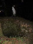 S Kecalem na zřícenině Leuchtenštejn obhlížíme terén zda by se zde vyspalo více lidí. V prostoru u zbytků hradní věže je to bída.