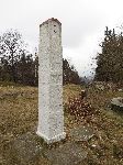 Historický mezník na lomu hranice jižně pod Biskupskou kupou.