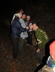 S Kecalem na zřícenině Leuchtenštejn obhlížíme terén zda by se zde vyspalo více lidí. V prostoru severního valu a příkopu je to slibnější, ale vítr tu fičí o sto šest.
