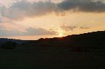 Západ slunka za salaší Găujoara, kde jsme spali