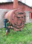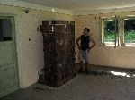 Andy obdivující kamna v opuštěné hájovně