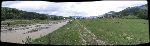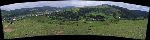 Panorámato Suceviţskýho kláštera s okolní krajinou