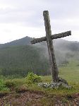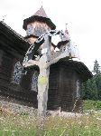 Kříž u dřevěného kostelíku