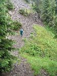 Deštěm a sutí ve svahu hory Strunigcul