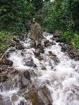 Suťovou stezkou ve svahu hory Strunigcul