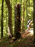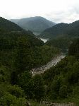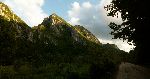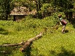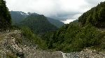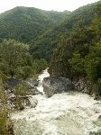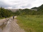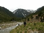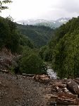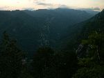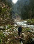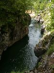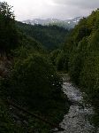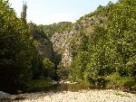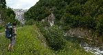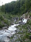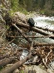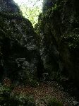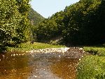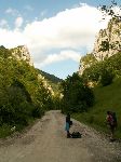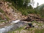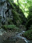 Už bylo na čase narazit na nějakou cestu, která není zarostlá, nestržená a bez klád. Po jednej už jdeme a říčka pod náma se zařezává do údolí.
