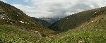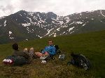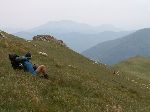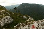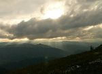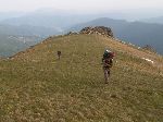 Na hřebenu Godeanu se pořád drží mraky. A začíná krápat.