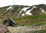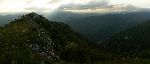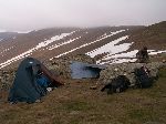 Na půlhodinky se mraky roztrhaly a odkryly náš hřeben. Naštěstí mraky zase přišly, aby jsme nemuseli litovat, že jsme slezli dolů.