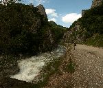 Další cesta povede kudy??? Že by jsme byli před soutěskou vyznačenou na mapě??? By tu podle mapy měla vést cesta. No, brodit je skoro na utopení, takže nezbývá než se škrábat po skále ve svahu nalevo.