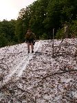 Pořád to je k salaším ještě slušný kousek. Ale stejně je čoveku líto, že včera za celej den nastoupal takovou vejšku a teď to za půlhodiny zfrčí dolů.