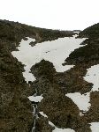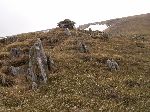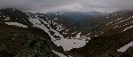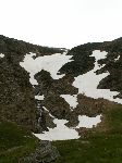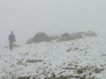Tápání v mlze. Podle paměti ze včerejšího výhledu musíme ve vrstevnici obejít suťovisko karu a pak sestupovat a doufat, že nenarazíme na žádnou skalku nebo nějakej sešup.