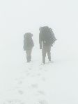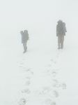 Mokro, zima, vítr, zoufalá viditelnost a nedostatek času nás nutí vymyslet náhradní plán ...opustit hřeben, sejít k salaším a údolím se dostat k přehradě ...a pak už nějak na vlak