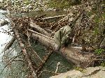 Naplavené zátarasy z kůlů ...jeden z mnoha důkazů, že to tu při povodních mohlo bejt zajímavý. Stmívá se, dneska si holt pivko nedáme a lze předpokládat mokrý spaní.