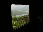Ranní výhled z našeho nocležiště na přehradu