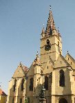 Evangelický kostel se sedmdesáti metrouvou zvonicí z roku 1500 v Mediaşi. Kostel je součástí městské pevnosti, kde v Krejčovské baště byl 1467 vězněn i Vlad Nabodávač.