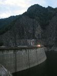 Skoro za večera na hrázi přehrady Vidraru, která má nejvyšší hráz v Rumunsku - 165m