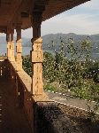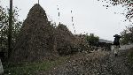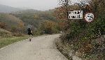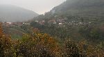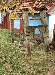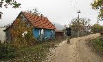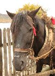 Pěšky po hafo kilometrech jsme promočení došli k nějaké kabaně, kde i vařili a hlavně tu staví bus do Orsovy. Koník čekajíce na pána před kabanou.