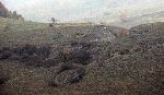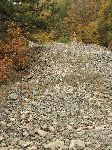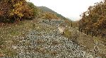 Na protějším svahu na Eibenthalem se rýsuje pokračování úzkokolejky vedoucí k dolu na Ujbánii. Jak jsme se dozvěděli zářez na fotce byl původní tunel na úzkokolejce, který byl pak pro potřeby nákladních aut vykután úplně.