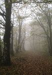Po rozloučení s Christianem pokračujeme za deště a mlhy dál po červené stezce na Bígr