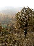 Večer jsme do Bígru nedorazili, protože mlžná tma nás zastihla před vrcholem Kopřivy a orientace byla nulová. Ráno sice mlha stále je, ale to nás neodradilo si vyběhnout na vyhlídku na Kopřivě.