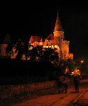 Korvínský hrad. Kdyby tam na mostě nestál Bedla, Kecal, Mravenec a Ruprecht, tak bych obrázek považoval vystřižený z nějaké pohádky.