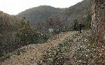 Trať vedená v úbočí skály nad osadou Tulea v údolí