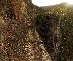 Traťové záseky ve skalách nad osadou Tulea v údolí