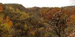 Barevné vyhlídky z tratě úzkokolejky. Na druhé straně údolí kolejka pokračuje do dolu Ghelari-vest uzavřeného v devadesátých letech.
