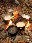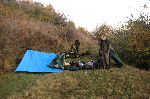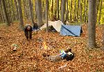 Večerní pohoda po nekonečném klesání a především hledání rovného placu na spaní.