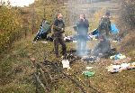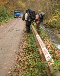 Náklaďáci se dřevem neznaj přestávky. S Bedlou i ostatkem se dohadujeme zda kolejka vedla po tejto cestě či vedle za říčkou ve svahu, kde se vine prapodivný val.