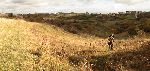 Po erozivní hraně haldy. Někde pod námi je pohřbené těleso kolejky.