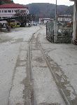 Úzké koleje vedoucí do fabriky. Hlídač nás informoval, že zde v Nagragu byla papírna, metalurgie a ocelárna.