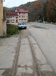 Násypka v Govăjdia. Hore k tej výsypce musí vést nějaká cesta, kolejka ... a taky, že vedla.