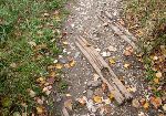 S Bedlou a Ruprechtem se po kolejce vracíme ke horním patrům svážnice a narážíme na portál tunelu, který vedl pod kopcem k dolu Ghelari. Asi po padesáti metrech je zavalen, ale našli jsme tu hřebík z úzkokolejky:-)