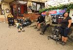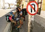 Kluci pod pomníkem osvoboditelů. Již po svačince v parku s návštěvou městeskejch cajtů. Těžko říci jestli nás zprvu nepovažovali za cikánskou grúpu, ale aj proslov cajta "mizérija pežos" si lze vysvětlovat různě. "pe jos" čti "pežos" znám jako pěšky, chodit pěšky, "mizérija" bylo pro mne nové slovo a dalo se odhadnout. Ale v Konstantě jsem pak viděl na zdi papír a bylo tam také slůvko "mizeria", tak jsem koukl do slovníku a následně nevím co si mám myslet, jako podstatné jméno to znamená "odpad, odpadky, bída, mizerové, potulové". Prostě ta lúza co nemá na víc než se trmácet pěšky :-))))))