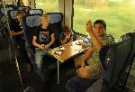 V tom rychlíku z Herkulánů jsme samozřejmě museli vyhazovat lidi spící na našich místenkách. Sic jsme rozdělení ve vagónu na dvě místa místa ...ale snad se aspoň děcka vyspali. Teď už jsme nasáčkování v rychlíku z Bukureště do Konstanty a Peprník to fotí z perónu ...jen se mu to nějak zrcadlí.