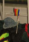 Mezi koupáníčkem a pivkem řešíme, co jak jede. Je to opět s návazmostma na pytel a jde mi především, kde se bude spát v další noc v Sigišoáře. A taky jsem pro kamaráda Kosmu nikde nesehnal nějakej pohled a vůbec ne známku. Prostě to tu neznaj. Ale Kosmovi, milovníku pohledů, něco musím poslat. Nakonec jsem šlohnul, přes všecky protesty, že su hovado, vošuntělou a rejsováčkama na prkenej stěně jednu fotku, co tu ještě nevopadla a nebyla zašlapána do písku a namaloval jsem na ni známku s Vladem Tepešem. Tedy Vlad III. Dracula. Na žvejkačku nalepil 1 baňu (hodnota asi centimetrovýho odtržku hajzlpapíru). Vzhled tepěše jsem se snažil přemalovat dle jednej historické malby z brožury. Vlajka je udělána z elektrikářskejch izolačních pásek, co jsem použil na camrátka. Mno, dával jsem tomu na doručení tak třicetiprocentní šancu, především v rumunech, ale věřil jsem na rumunskou nacionalitu a vsadil na Vlada, rumunskou vlajkou a i tu jednu baňu a .....
