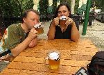 Čekáme na dlabanec v jednej zahrádce na Turdském náměstí.