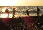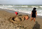 Kuba s Jíjou staví pevnost. Bohužel příboj stále nepolevuje, takže koupel, osvěženíčko je stále ve stylu omláceníčko ve vlnách.