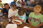 Andy se Zrzkem šli směrem na jih na průzkum, kde by se dalo spát. Já jsem šel děckám ukázat, kde se kupujou clačice a porumbové ...si tam pak zašli sami. A teď se tu už v písku vytváří...