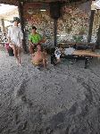 Já jsem šel dopoledne k obhlídce, kiosků, obchodů, hospůdek ...prostě co tu, kde je a co funguje ...nikdo se mnou nechtěl jít, páč se zrovna nadlábli čínskejch polotovarů zakopenejch v čechách ....a když jsem se vrátil, tak ...kde sem ...že se stěhujou a já jsem v pérdeli ....že už vlny dosahujou ke stanům a všici se z pláže stěhujou. Kubík staví vytrvale z písku hráze, i když mu ji každá pátá vlna nahlodává. Tož se všecky věci nahňácali do baťohů, plachty a stany se nebalily a přikurtovaly k baťohům a vynesli jsme je k rybářské hospůdce na útesu, kam se stejně chtělo jít a vymyslíme co dál.